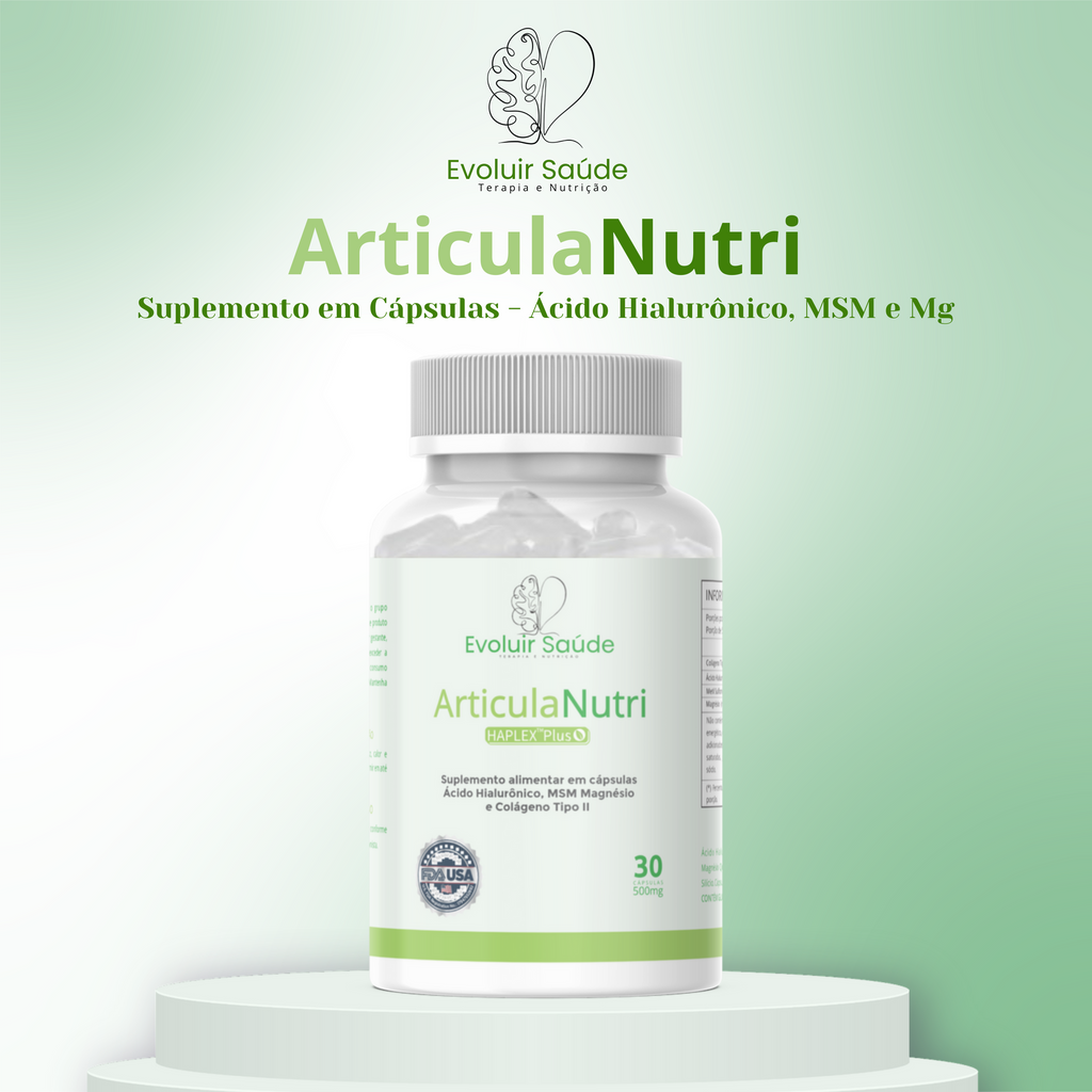 Tome 1 cápsula por dia do ArticulaNutri da Evoluir Saúde para prevenir e/ou aliviar dores articulares. Este suplemento foi cuidadosamente desenvolvido com um blend de ingredientes de alta concentração que atua como um potente anti-inflamatório, auxiliando na síntese de colágeno tipo II e na lubrificação das articulações.
